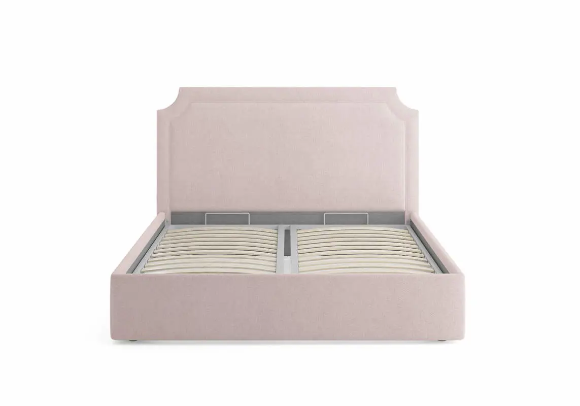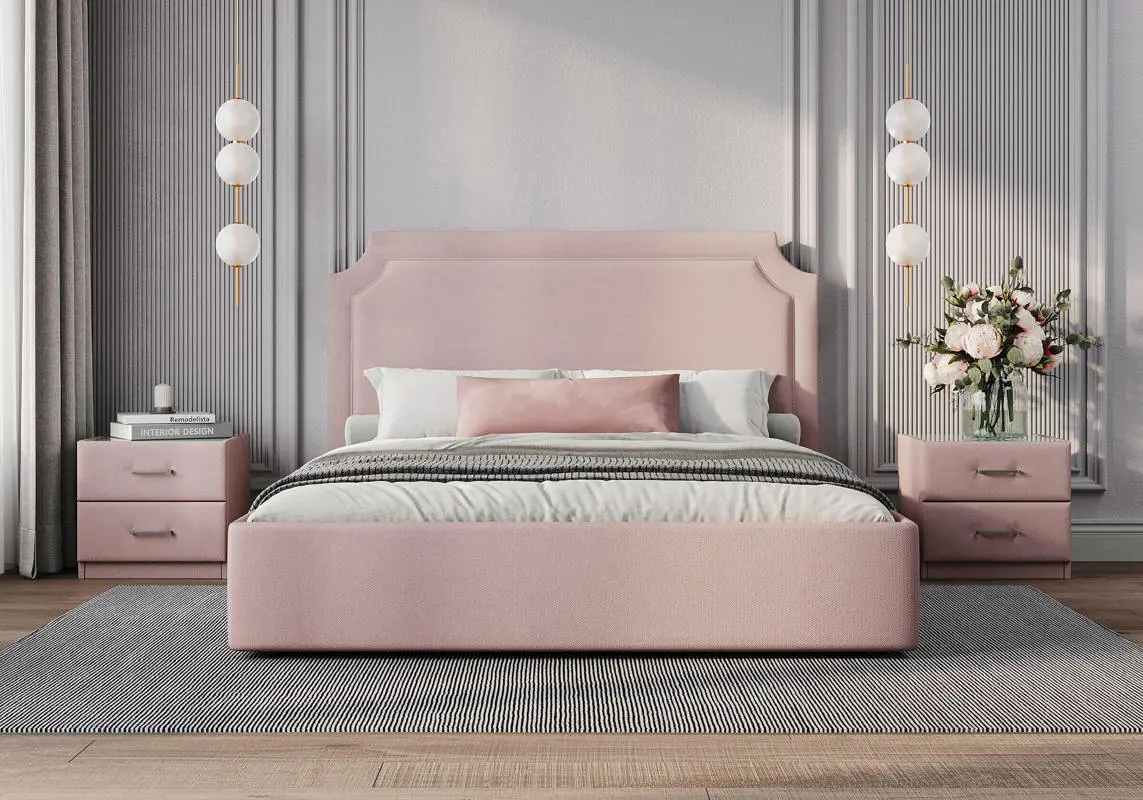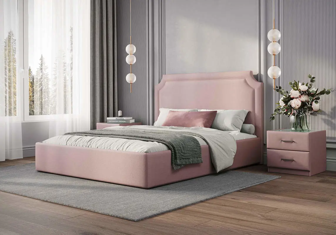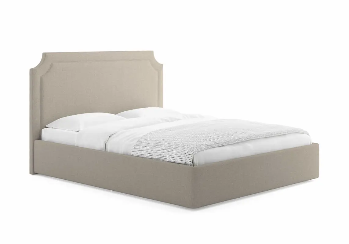 Кровать с высоким, элегантным изголовьем и декоративной рамкой. Такое решение придает кровати визуальную выразительность и делает ее центральным элементом спальни. Стоит обратить внимание на декоративный кант, который добавляет изысканности и завершенности облику. Кровать Eliot имеет минимальные опоры, царги опущены до пола. Также можно встроить зону хранения — это идеальное решение для экономии пространства в спальне.